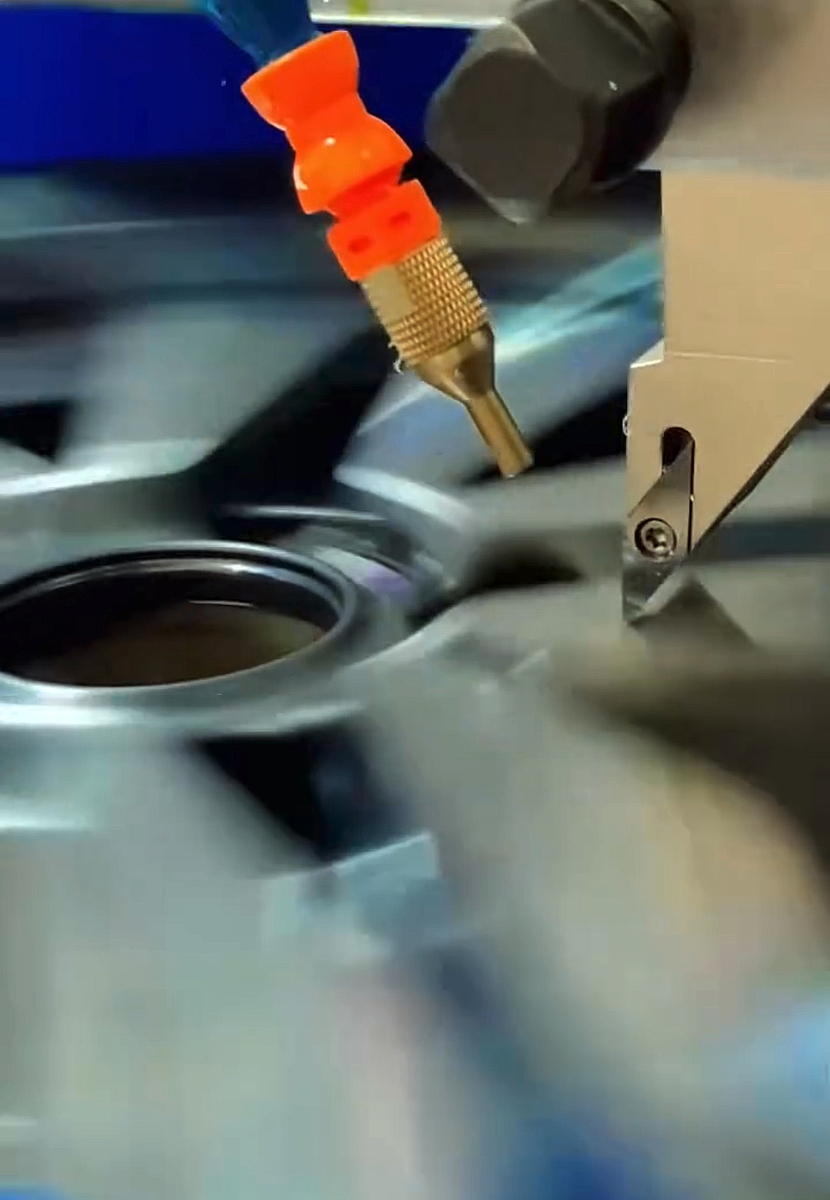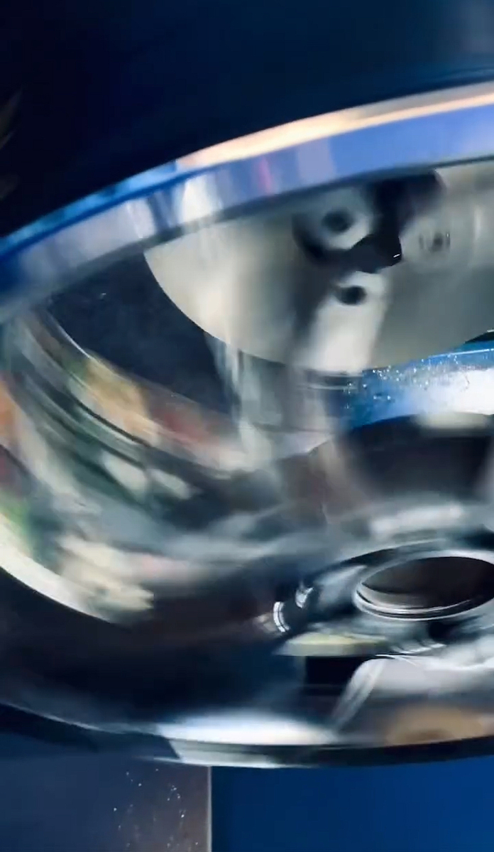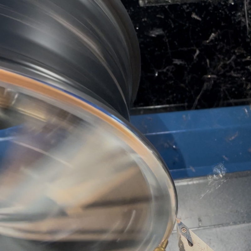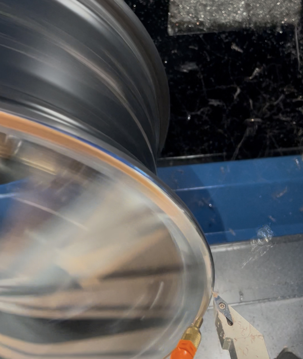 CNC-Bearbeitung der Kontur im beschädigten Randbereich. Dadurch erhält die Felge ihr ursprüngliches Aussehen zurück.